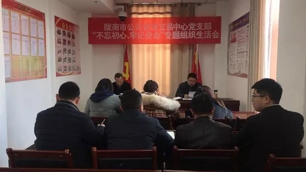 按照市委“不忘初心、牢記使命”主題教育領導小組《關于主題教育單位基層黨組織召開專題組織生活會和開展民主評議黨員的通知》(隴教組發(fā)〔2019〕16號)要求,12月9日,市公共資源交易中心召開了“不忘初心、牢記使命”專題組織生活會暨民主評議黨員會議,中心支部書記、副主任姜五軍主持,全體黨員干部參加了會議。