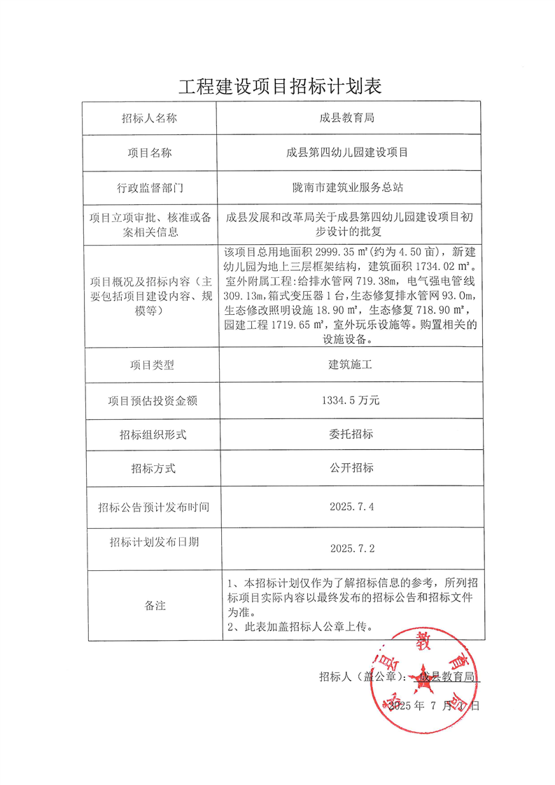 成縣第四幼兒園建設(shè)項(xiàng)目
