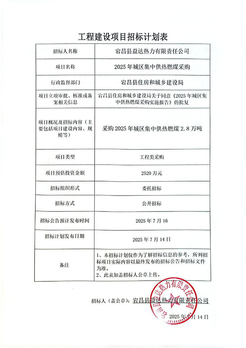 2025年城區(qū)集中供熱燃煤采購(gòu)