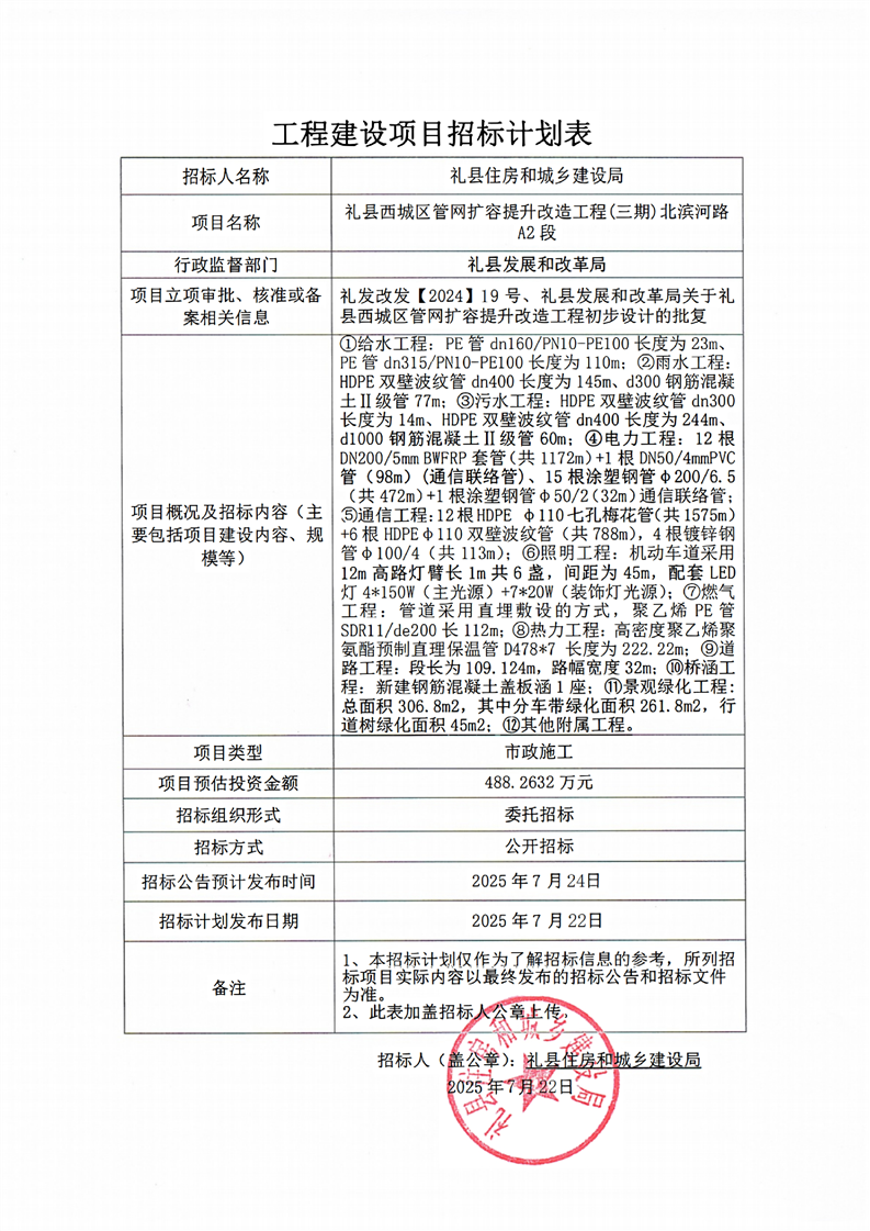 禮縣西城區(qū)管網(wǎng)擴(kuò)容提升改造工程(三期)北濱河路A2段