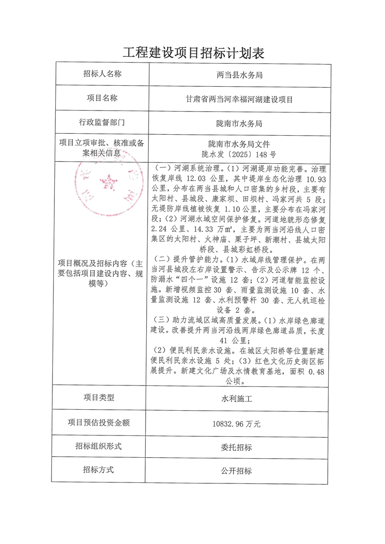 甘肅省兩當河幸福河湖建設項目