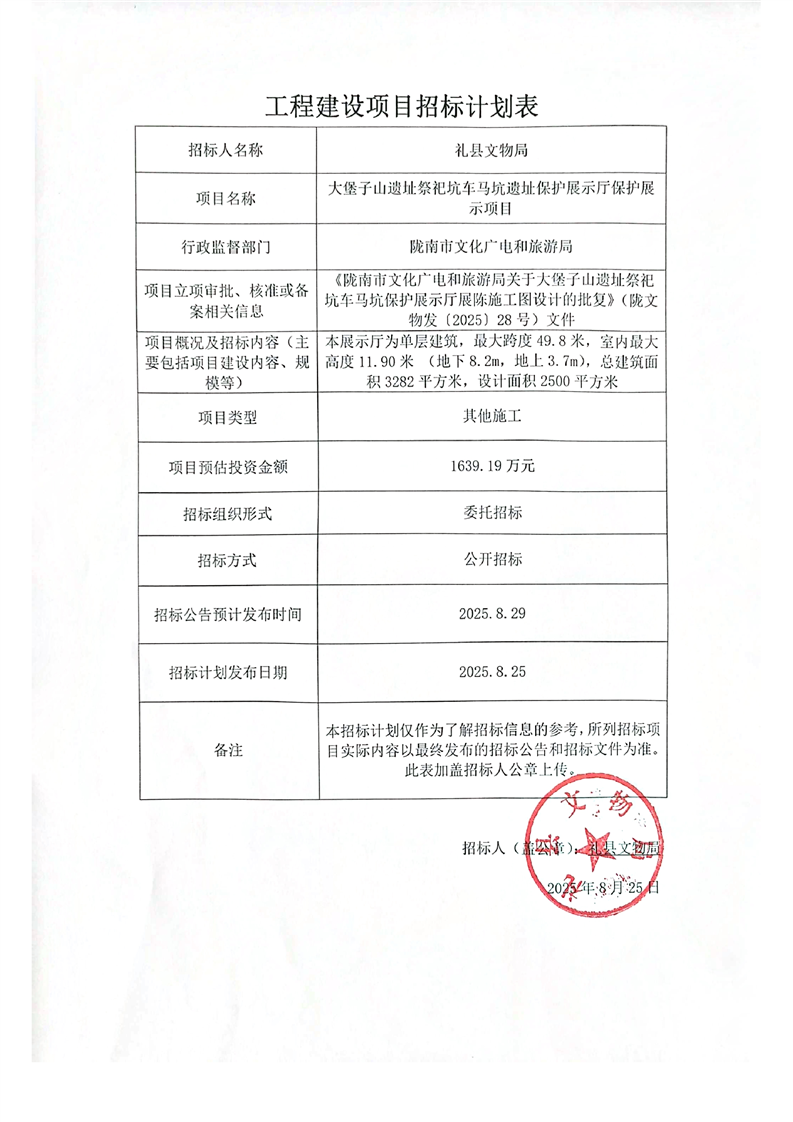 大堡子山遺址祭祀坑車(chē)馬坑遺址保護(hù)展示廳保護(hù)展示項(xiàng)目