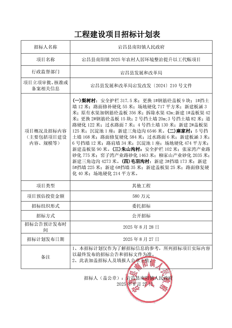宕昌縣南陽鎮(zhèn)2025年農(nóng)村人居環(huán)境整治提升以工代賑項(xiàng)目