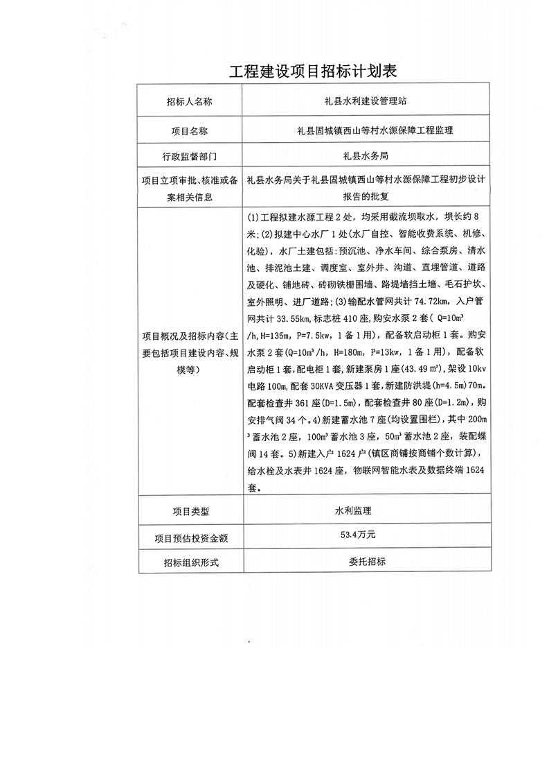 禮縣固城鎮(zhèn)西山等村水源保障工程監(jiān)理