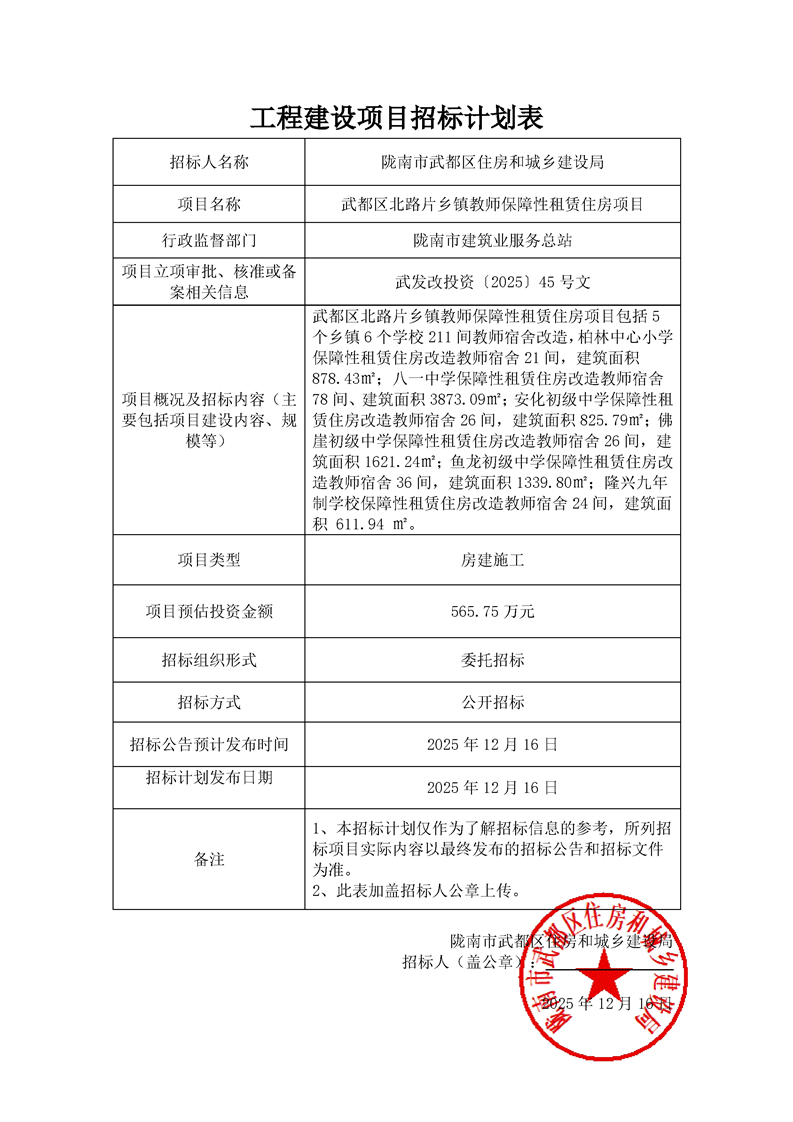 武都區(qū)西路片鄉(xiāng)鎮(zhèn)教師保障性租賃住房項目