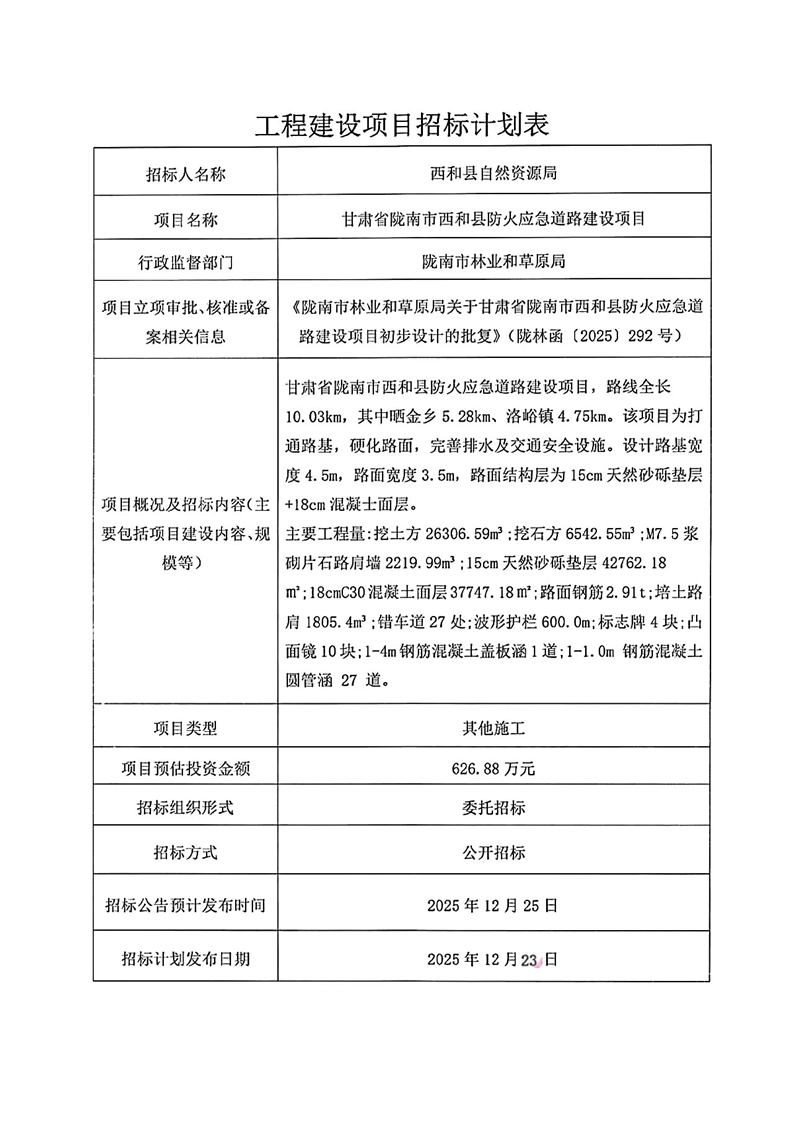甘肅省隴南市西和縣防火應(yīng)急道路建設(shè)項目