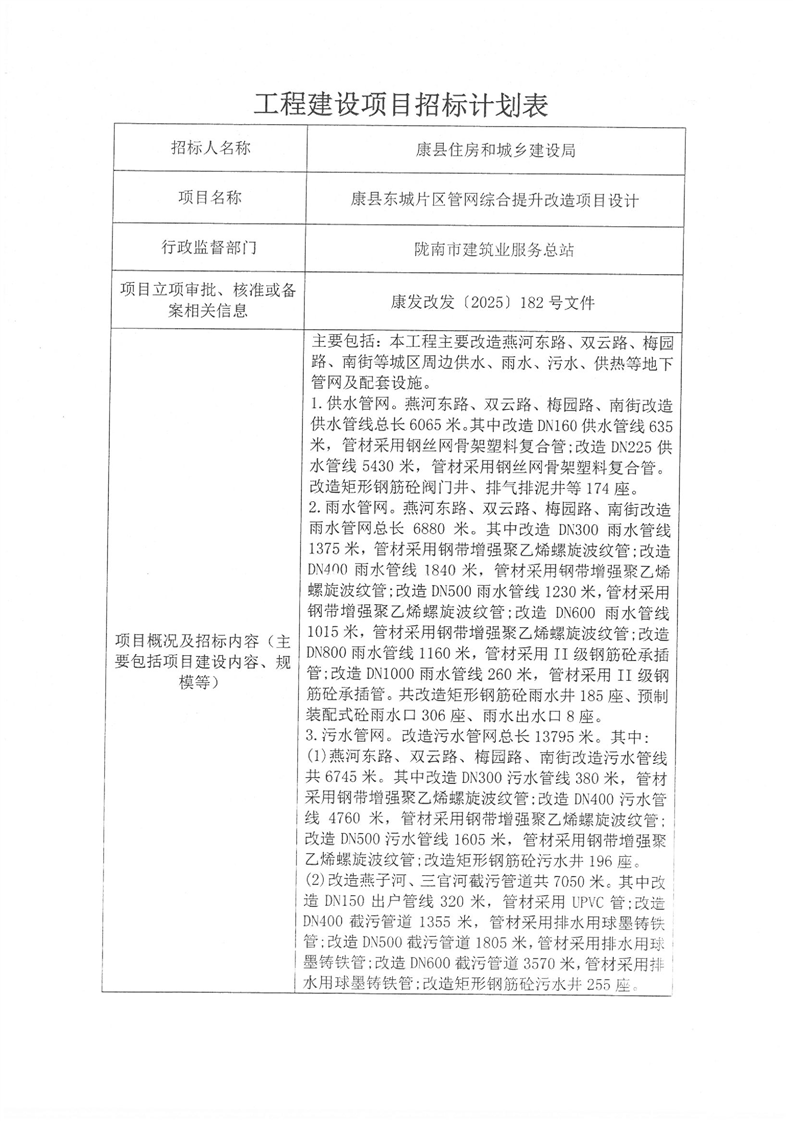 康縣東城片區(qū)管網(wǎng)綜合提升改造項目設(shè)計