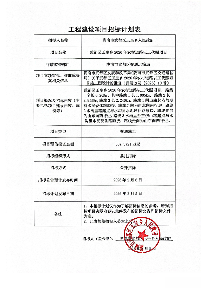 武都區(qū)玉皇鄉(xiāng)2026年農(nóng)村道路以工代賑項(xiàng)目