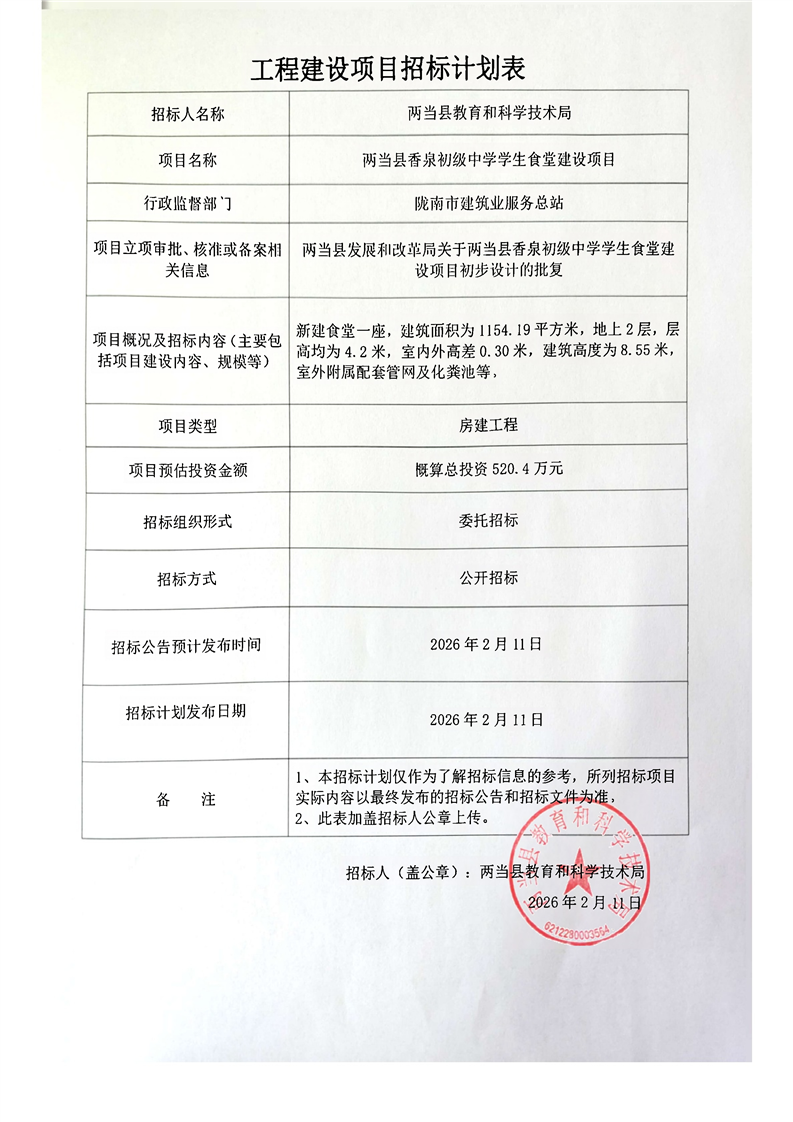兩當(dāng)縣香泉初級(jí)中學(xué)學(xué)生食堂建設(shè)項(xiàng)目