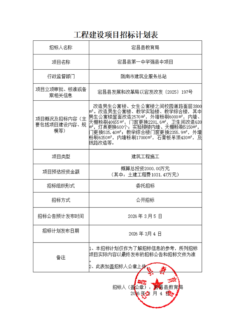 宕昌縣第一中學(xué)強(qiáng)縣中項目