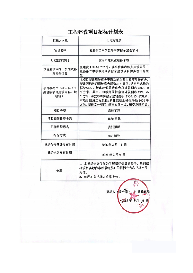 禮縣第二中學(xué)教師周轉(zhuǎn)宿舍建設(shè)項(xiàng)目