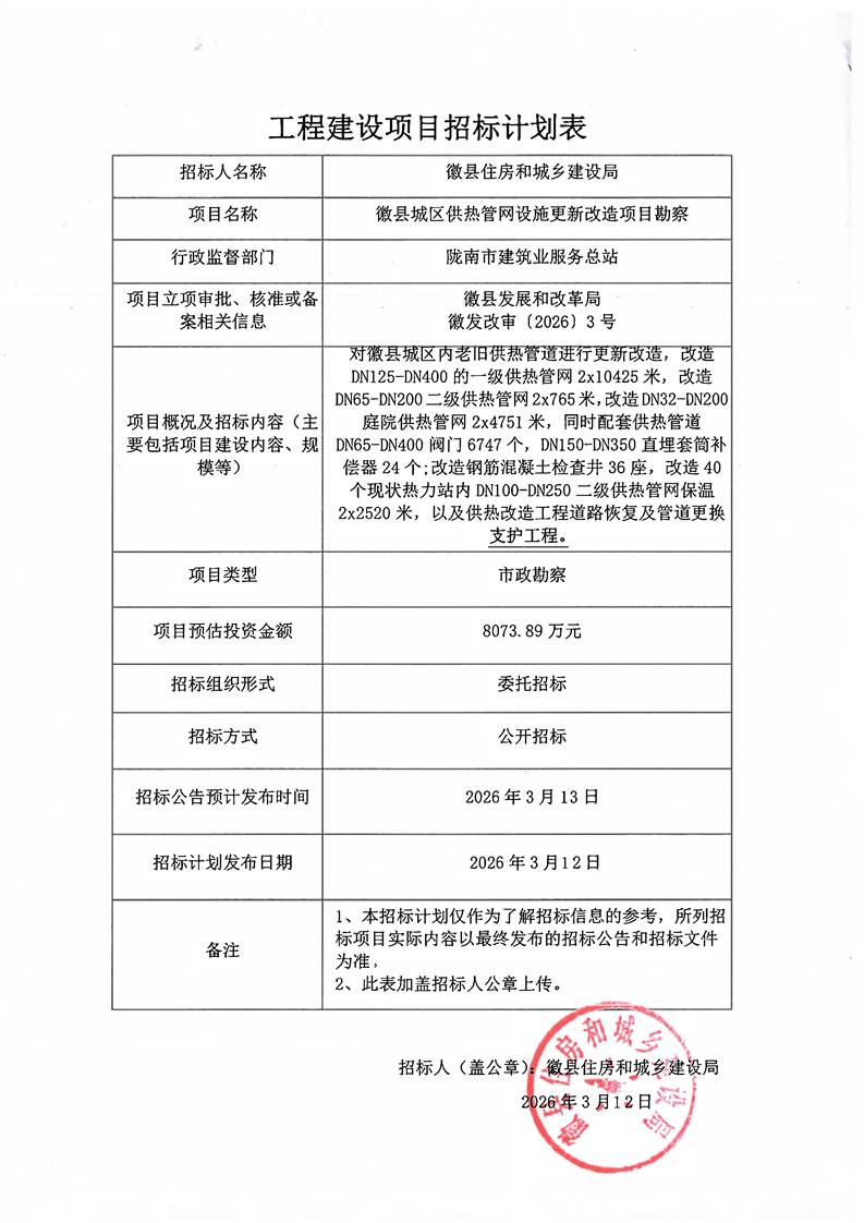 徽縣城區(qū)供熱管網(wǎng)設施更新改造項目勘察