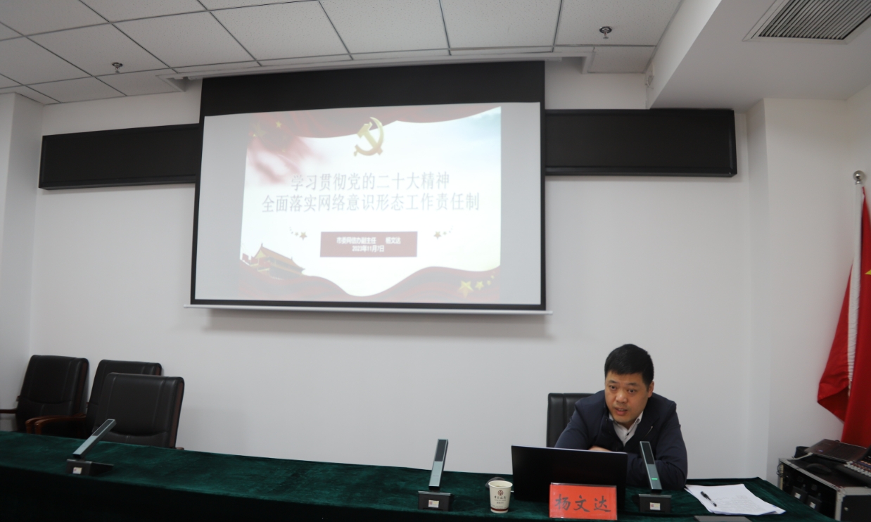 11月7日,楊文達(dá)同志以“學(xué)習(xí)貫徹黨的二十大精神,全面落實(shí)網(wǎng)絡(luò)意識(shí)形態(tài)工作責(zé)任制”為題作了專題培訓(xùn)
