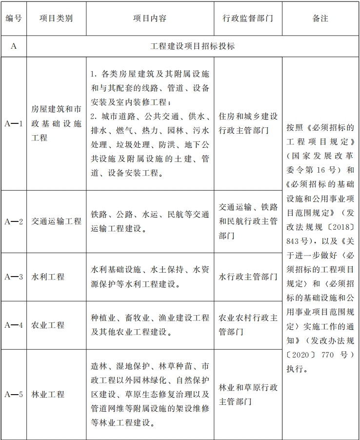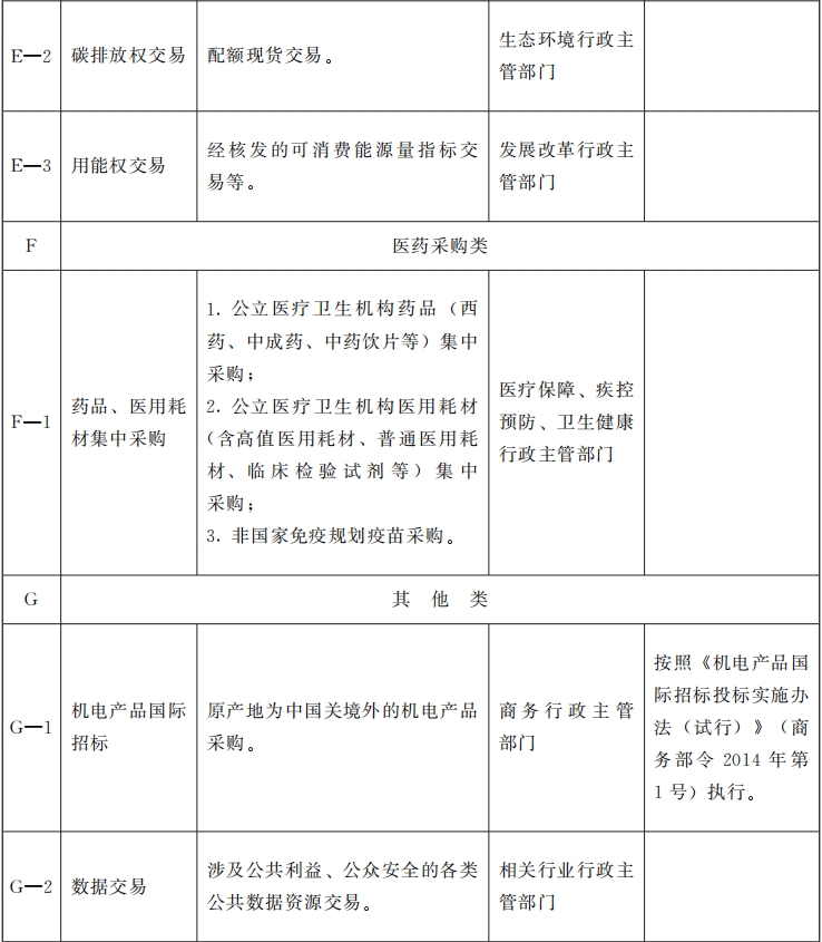 一、《目錄》內(nèi)依法必須招標(biāo)的項(xiàng)目應(yīng)當(dāng)進(jìn)入各級(jí)公共資源交易平臺(tái)交易,法律、法規(guī)、規(guī)章及國家有關(guān)行業(yè)行政主管部門另有規(guī)定的,從其規(guī)定。